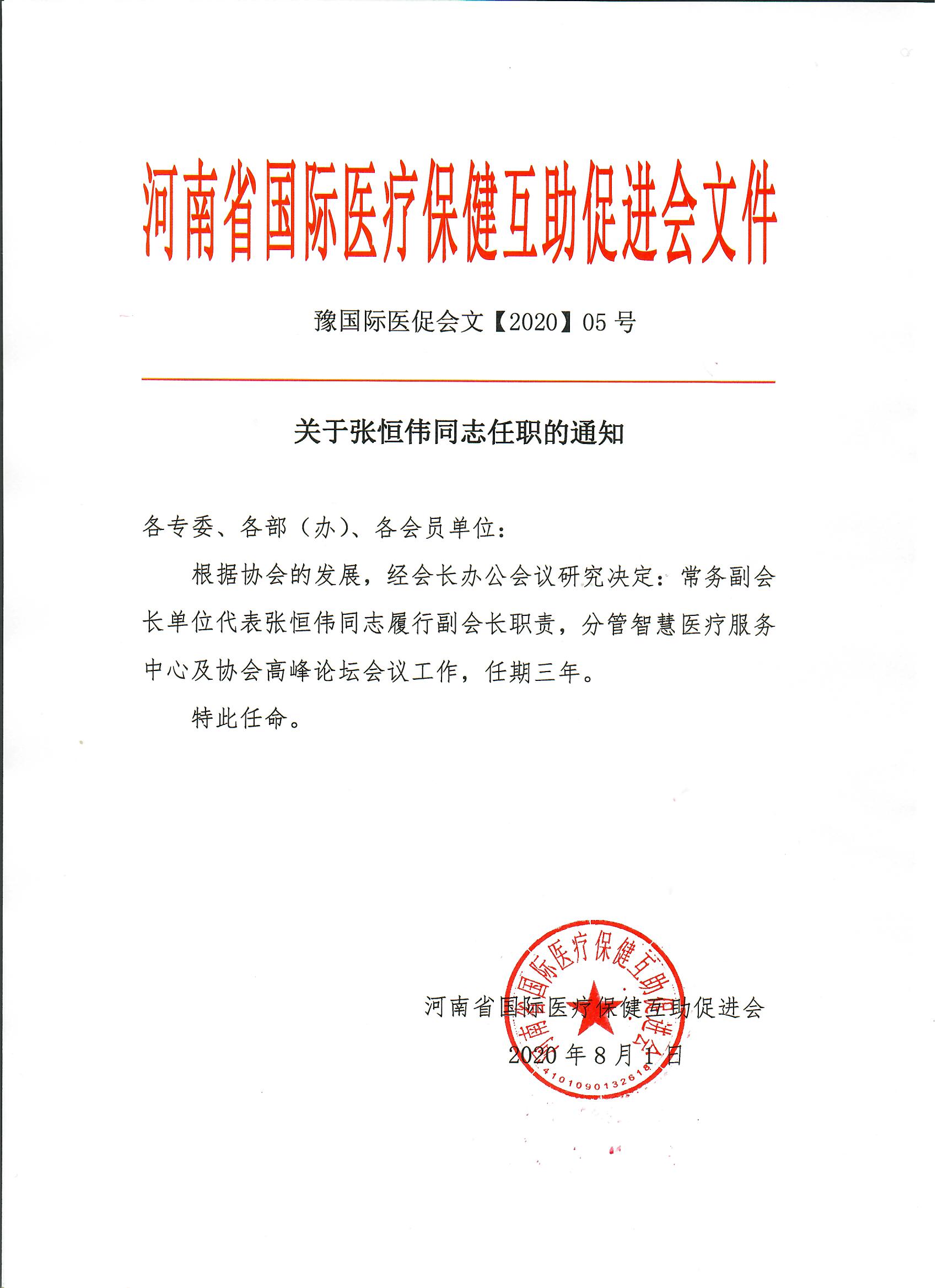关于张恒伟同志任职的通知