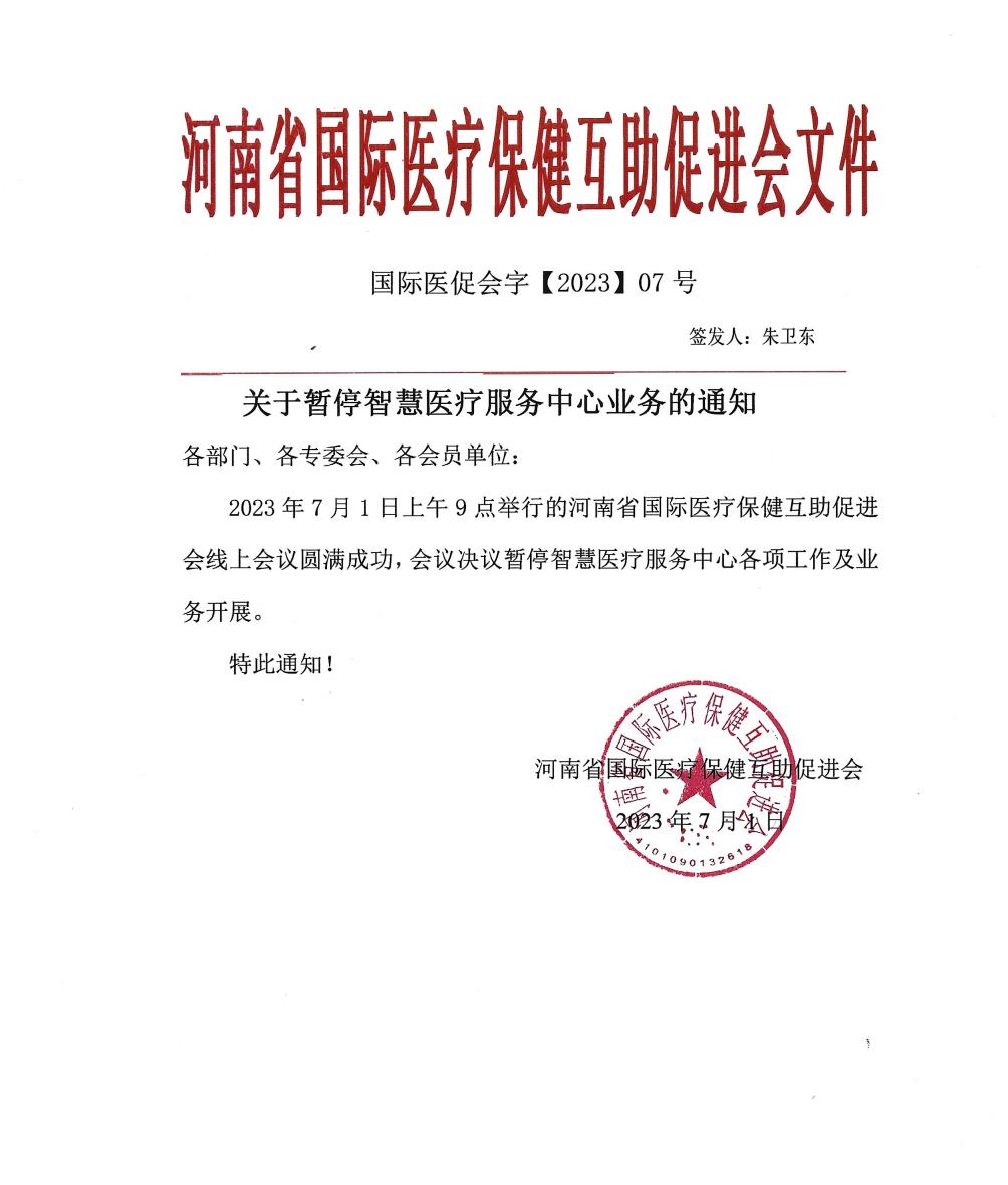 关于暂停智慧医疗服务中心业务的通知