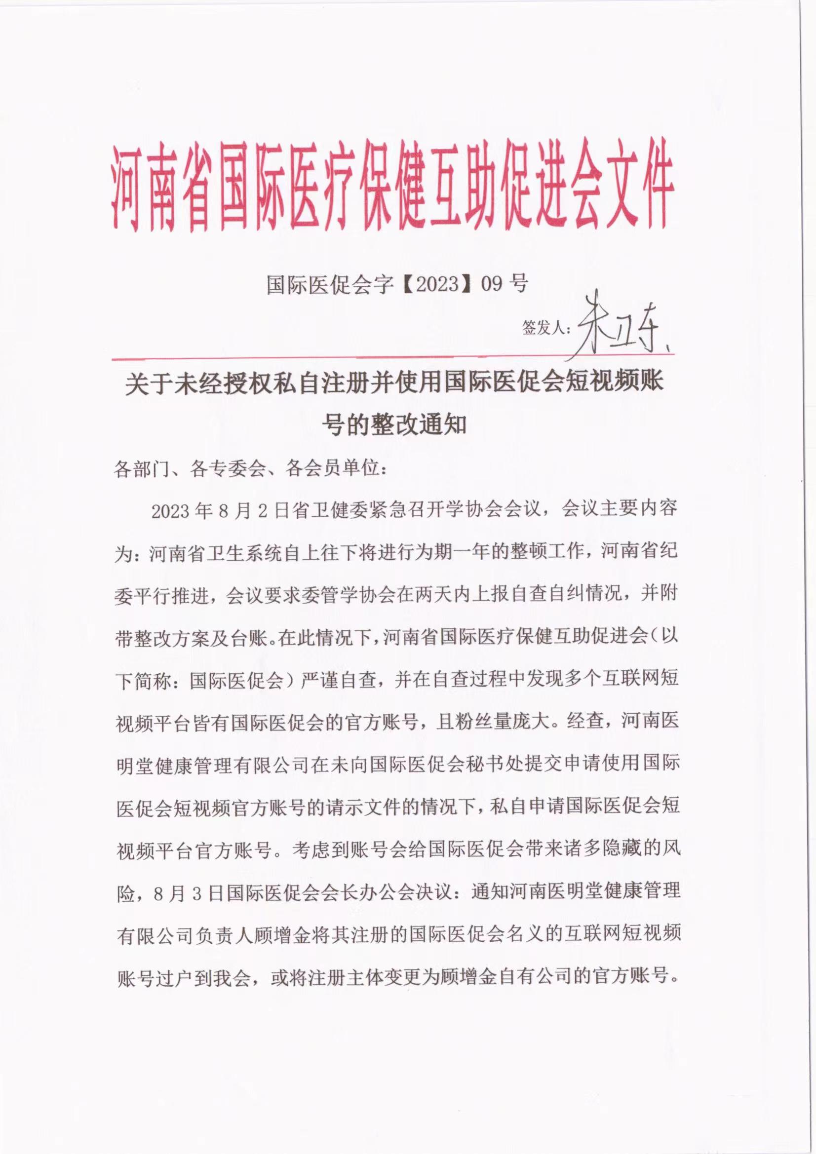 关于使用国际医促会短视频账号的整改通知