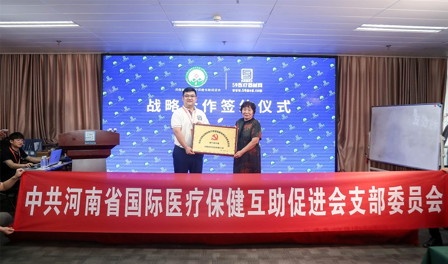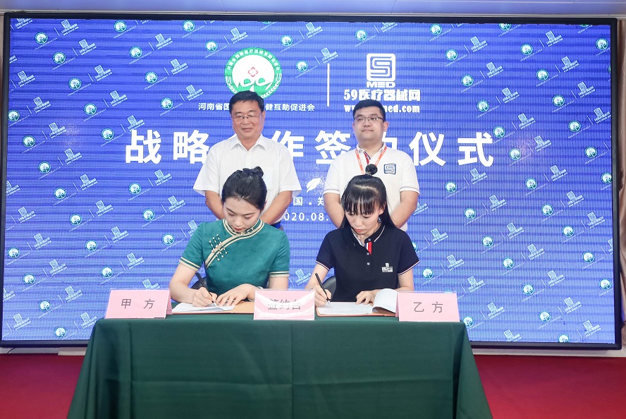 2020年8月5日上午,河南省国际医疗保健互助促进会简称“国际医促会”在河南伍玖实业有限公司---59医疗器械网会议室签约了战略合作协议,国际医促会会长朱卫东、党支部书记刘卫东、副会长张新红、副秘书长赵炫羽,59医疗器械网创始人孟颍涛、董事巴青霞、杨海涛、李志平、王锋、张胜启等出席了签约仪式。