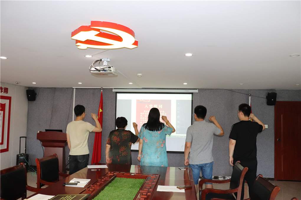 下午14时,庄严的国歌声响起,全体成员起立高唱国歌,活动正式拉开序幕。“我宣誓,我志愿加入中国共产党,拥护党的纲领……”党员活动室内,国际医促会党支部全体党员在党支部书记刘卫东带领下,面向庄严的党旗集体宣誓,重温入党誓词。
